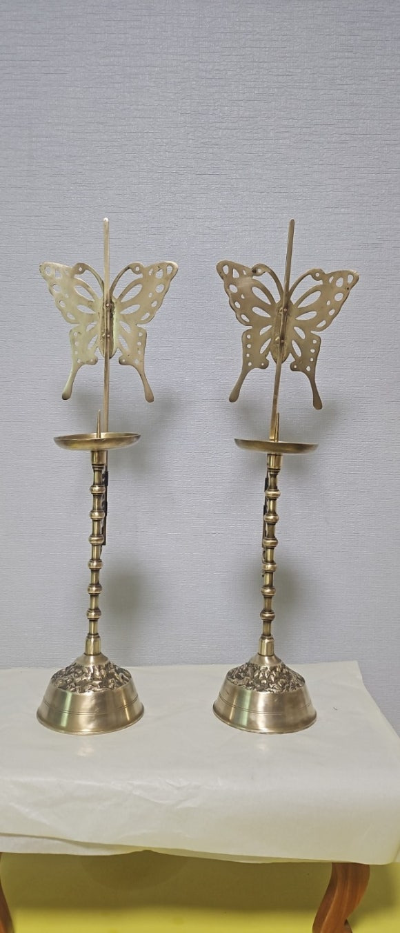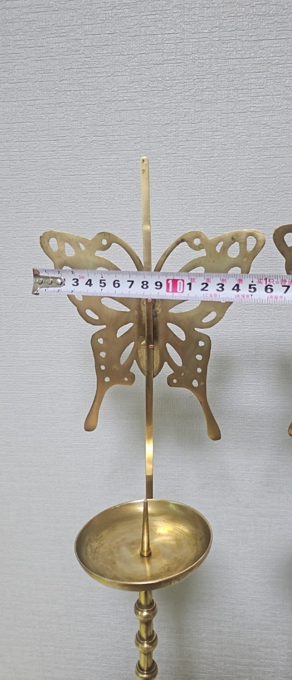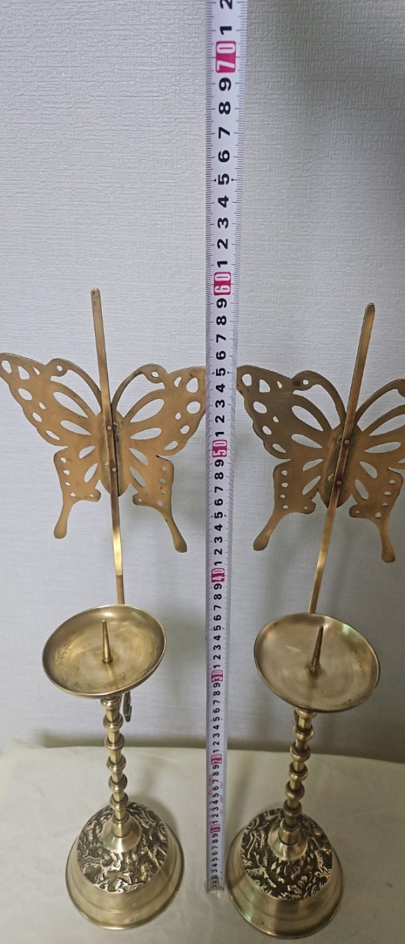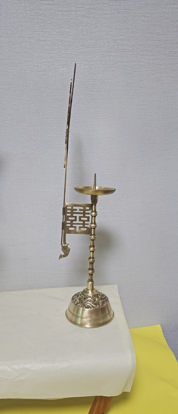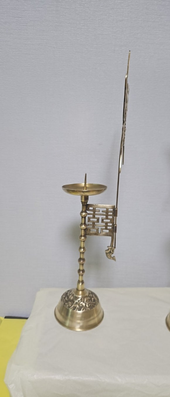 옛날 방짜유기 투각 나비 죽절문 쌍희자문 촛대 장생도문